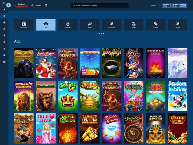 Казино Jackpot Paradise работает на программном обеспечении Microgaming, Net Entertainment, Playtech, 1x2gaming, Barcrest, Big Time Gaming, ELK Studios, Evolution Gaming, EYECON, lightningboxgames, Novomatic, Play'n GO, Quickspin, Rabcat, Thunderkick, Wazdan, Pragmatic Play, Nolimit City, Red Tiger Gaming, Spinomenal, Fugaso, SYNOT Games, Skywind, Triple Edge Studios, Northern Lights Gaming, Stormcraft Studios, Switch Studios, All41 Studios, Gluck Games, Gameburger Studios, Pulse 8 Studios, Slot Factory, Neon Valley Studios, Shuffle Master, SpinPlay Games, Real Dealer Studios, GONG Gaming, On Air Entertainment, Buck Stakes Entertainment, Games Global, Ash Gaming, Blueprint Gaming, Greentube, NextGen, ProgressPlay, Tom Horn Gaming, WMS, Inspired Gaming, SG Interactive, Red7Mobile, CORE Gaming, Scientific Games, Reel Time Gaming, BF Games, Iron Dog Studio, Old Skool Studios, Betdigital, Just For The Win, PearFiction Studios, Wild Streak Gaming, Slingshot Studios, Fortune Factory Studios, Gamevy, Crazy Tooth Studio, Alchemy Gaming, Rarestone Gaming, Black Pudding Games, Snowborn Games, Hacksaw Gaming, Max Win Gaming, Gold Coin Studios, Half Pixel Studios, Aurum Signature Studios, Lucksome Gaming, Area Vegas, Wishbone Games, Circular Arrow, HammerTime Games, INO Games, Nailed It! Games, Neko Games, Reel Kingdom, Oros Gaming and Light & Wonder , а игры доступны как через веб-платформу, так и через мобильный сайт, позволяющий играть со смартфонов и планшетов.Blackjack