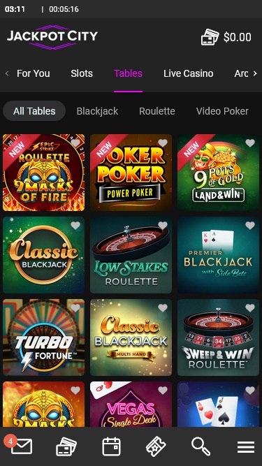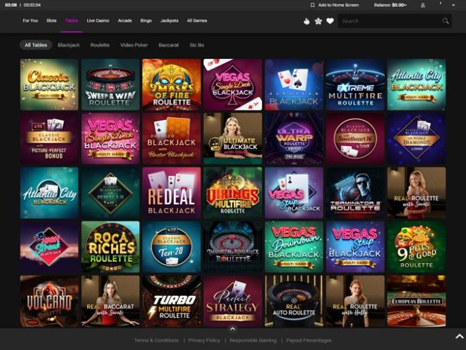 Если вы любите блэкджек, вам доступен широкий выбор вариантов, включая европейскую и классическую версии. Также есть такие разновидности блэкджека, как Double Exposure, Pontoon, Spanish 21 и Super Fun 21.