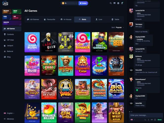 Прокрутив страницу вниз, вы быстро увидите некоторые из самых популярных игр из всех основных категорий, включая несколько собственных продуктов, в которые можно играть эксклюзивно здесь. Интересным дополнением к сайту является собственный чат в правой части платформы , где игроки могут общаться, обмениваясь советами, подбадривая друг друга или просто обсуждая повседневные темы.