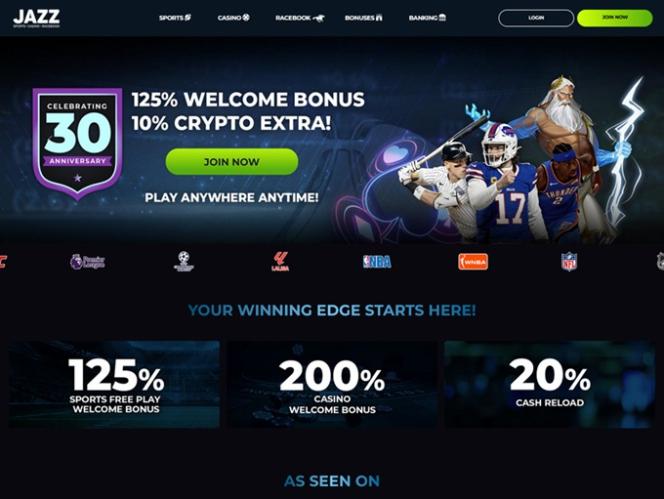 Jazz Casino and Sportsbook — это онлайн-букмекерская контора, работающая с 1994 года. Сайт предлагает полностью интегрированную систему ставок на спорт, а также развивающееся онлайн-казино с игровыми автоматами и настольными играми. Хотя у компании нет лицензии, она существует уже давно и стабильно выплачивает выигрыши.