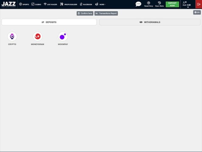 В Jazz Casino and Sportsbook довольно широкий выбор банковских услуг. Сайт принимает депозиты и вывод средств с помощью криптовалюты, электронных кошельков и кредитных карт. Скорость выплат вполне приемлемая после подтверждения личности.