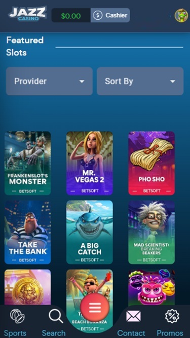 Казино Jazz работает на платформе BetSoft, Big Time Gaming, Evolution Gaming, Ezugi, Endorphina, Pragmatic Play, Nolimit City, Red Tiger Gaming, Red Rake Gaming, BGAMING, OneTouch, Pocket Games Soft, Fresh Deck Studios, Mancala Gaming, Caleta Gaming, Wager Gaming, Zitro, Wild Streak Gaming, Vibra Gaming, Dragon Gaming, Dragoon Soft, Bombay Live, 5Men Gaming, Reel Kingdom and Live88 , а игры предоставляются через платформу, к которой вы получаете доступ с помощью интернет-браузера вашего устройства. Сайт выглядит довольно привлекательно и прост в навигации, а поддержка мобильных устройств уже реализована.