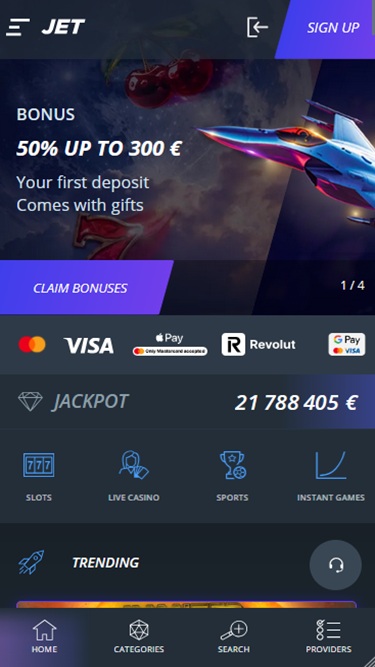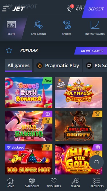 Играл в этом казино, потому что получил бонусное предложение с форума здесь. В целом понравилось, ничего выдающегося, но игры хорошие и аккуратно разложены. Хорошо то, что все игры загружаются очень быстро и нет проблем с навигацией. Не выиграл, поэтому не могу сказать, как работает процесс вывода в Jet.