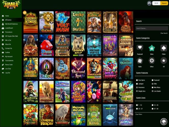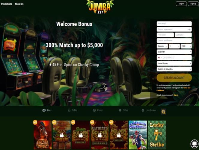 В казино Jumba Bet представлен большой выбор видео- и классических слотов, хотя прогрессивных джекпотов здесь нет.
