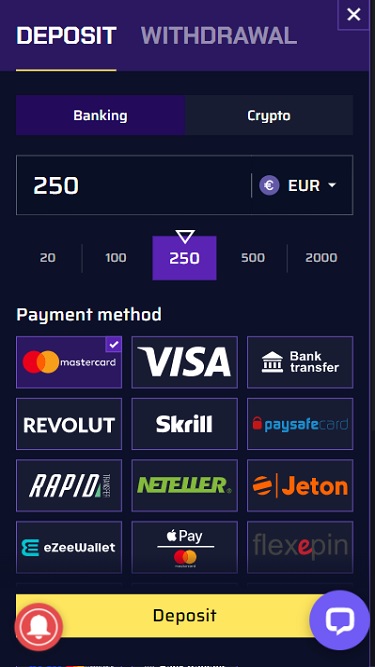 Что касается способов оплаты, вы можете выбрать различные криптовалюты , поскольку это онлайн-казино, ориентированное на криптовалюты. Доступные криптовалюты: Bitcoin (BTC), Litecoin (LTC), Ethereum (ETH), Dogecoin (DOGE), Bitcoin Cash (BCH), Tether (USDT), Cardano (ADA), Ripple (XRP), NEO (NEO), Binance (BNB), Bitcoin SV (BSV), TRON (TRX), Casino Coin (CSC).