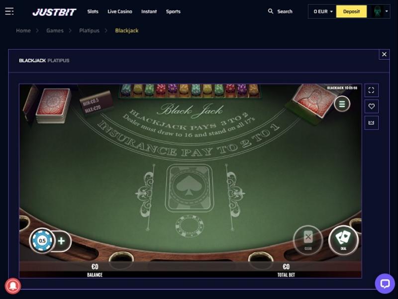 Justbit Casino Blackjack (Playtech)Расширять