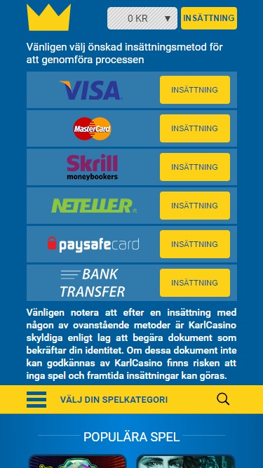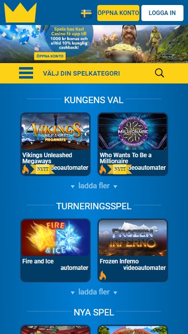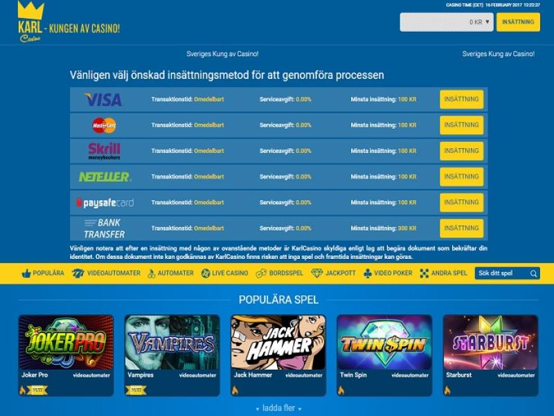 KarlCasino — это онлайн-казино, открывшееся в 2014 году и управляемое компанией L&L Europe Ltd. Казино обслуживает шведский рынок ставок и предлагает игры от Net Ent, что в сочетании с быстрой выплатой выигрышей и отличными бонусными условиями делает KarlCasino превосходным сайтом для ставок.Информация о казино