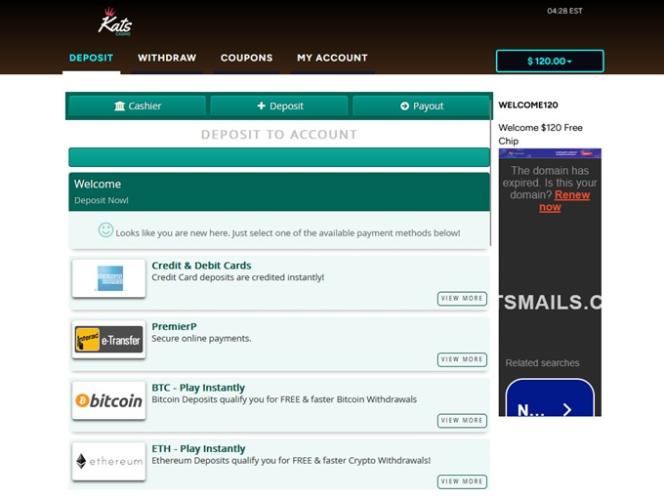 Варианты банковских операций в Kats Casino
