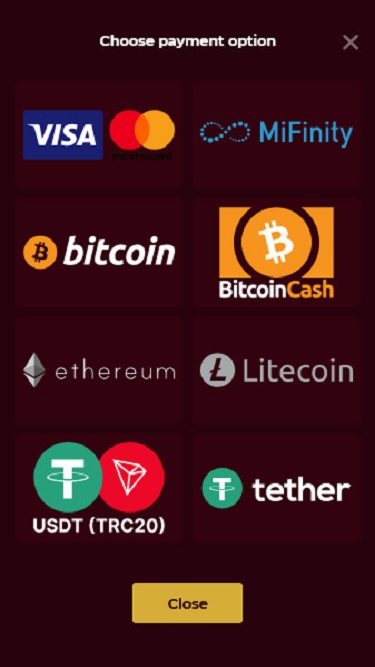 Все доступные способы оплаты зависят от страны, и хотя в кассе казино их не так много, игроки смогут совершать быстрые и безопасные транзакции, используя криптовалютные платежи, дебетовые и кредитные карты или популярные онлайн-платежные системы.