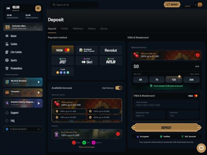 Оператор внедрил новейшие технологии шифрования SSL и TLS с 128-битным ключом, которые известны своей эффективностью в предотвращении вредоносных кибератак, способных поставить под угрозу данные и транзакции игроков.