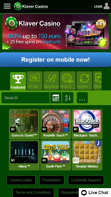Помимо стандартных игр казино, Klaver Casino предлагает своим клиентам игры с живыми дилерами.