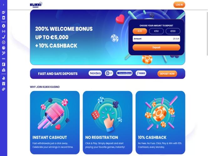 Klikki Kasino — это крупный игорный сайт с обширным списком игровых возможностей, ориентированный в первую очередь на финскую аудиторию. Бренд предлагает тысячи онлайн-слотов, игры с живыми дилерами, настольные игры, игры с живыми дилерами и множество вариантов ставок на спорт, а также обширную программу акций с уникальными бонусами, поощрениями и наградами.