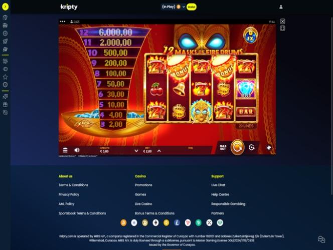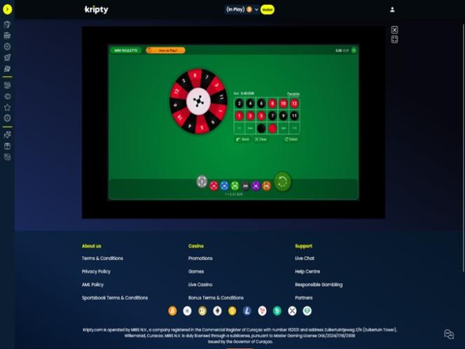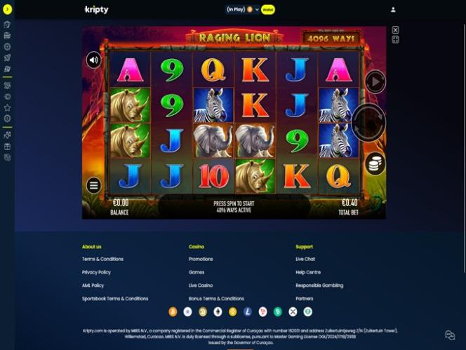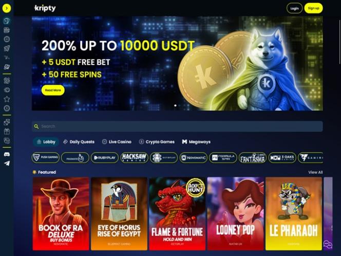 Что касается лицензирования, казино Kripty регулируется и лицензируется Управлением по азартным играм Кюрасао. Бренд приветствует игроков из Канады, Германии и Финляндии на своем веб-сайте и приглашает их ознакомиться со всеми фантастическими играми, акциями и развлечениями.
