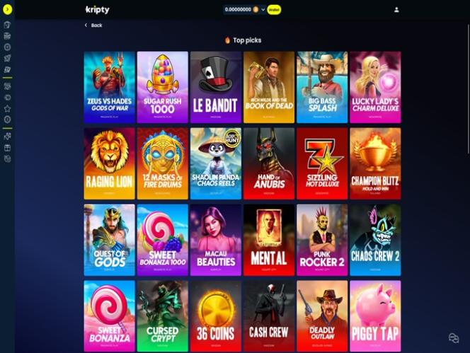 Если вы создадите аккаунт в казино Kripty, вы будете рады узнать, что этот бренд предоставляет игрокам, казалось бы, бесконечное количество отличных игр казино. На сайте представлены игры от более чем 110 разработчиков программного обеспечения , каждый из которых предлагает игрокам уникальные игры.