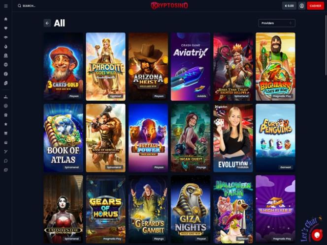 Список поставщиков программного обеспечения для онлайн-казино, сотрудничающих с Kryptosino, впечатляет. В него входят не только крупнейшие и наиболее влиятельные имена в индустрии, но и множество небольших студий, предлагающих инновационный контент для казино, который начал менять ландшафт iGaming и устанавливать новые отраслевые стандарты. Это особенно заметно, когда речь идет о привлекательных криптоиграх.