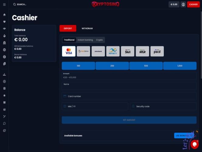 Kryptosino Casino — это онлайн-казино , принадлежащее и управляемое компанией Versus Odds BV, зарегистрированной в соответствии с законодательством Кюрасао, со штаб-квартирой в Виллемстаде.