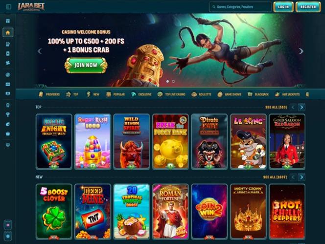 А теперь давайте подробнее поговорим о визуальном стиле казино. Larable во многом вдохновлен известной игровой франшизой о смелой исследовательнице Ларе Крофт , поэтому неудивительно, что весь сайт и его героиня очень напоминают захватывающий мир игр Tomb Raider .