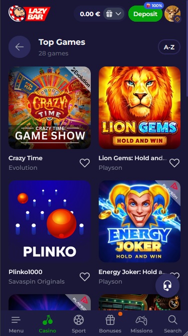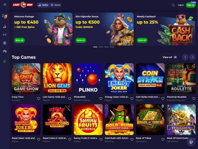 Если вы в первую очередь ищете онлайн-слоты, то казино Lazybar может стать идеальным местом. Казино собрало потрясающую коллекцию из более чем 3000 уникальных игр, позволяющих попробовать себя во всех жанрах слотов. Вот некоторые из самых популярных игр, которые пользуются здесь популярностью: