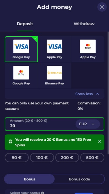 Казино Lazybar позволяет вносить и выводить средства со счета, используя множество способов оплаты. Среди них Visa , Mastercard , банковский перевод , Apple Pay , Google Pay , Skrill , Neteller , Paysafecard , Neosurf и MiFinity . Что касается криптовалют, то в качестве основного способа оплаты игрок может использовать исключительно Bitcoin . В настоящее время другие криптовалютные методы недоступны.