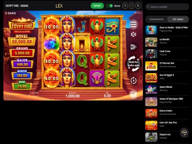 На платформе LEX Casino представлено более 120 студий-разработчиков, что позволяет ему успешно конкурировать с крупнейшими игроками рынка. Такой широкий выбор программного обеспечения удовлетворит даже самых опытных игроков, поскольку здесь доступны тысячи уникальных игр.