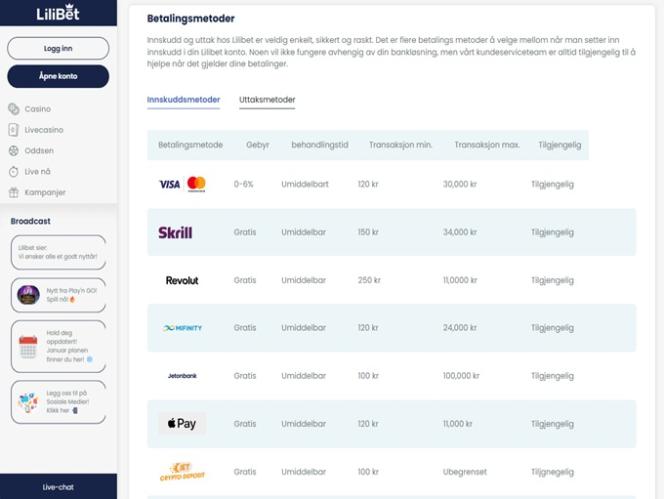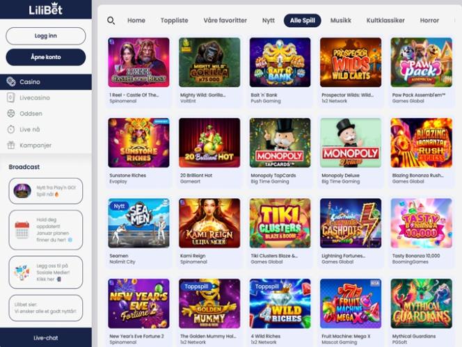 Первое впечатление от Lilibet – это то, что этот бренд ориентирован на игроков. Сайт отличается простотой, и ориентироваться в нем очень легко. Платформа казино хорошо организована, с главным меню слева, включающим основные категории, такие как казино, лайв-казино и ставки на спорт. Кроме того, вы можете посетить раздел «Live In Play», предназначенный для ставок на спорт в режиме реального времени . Также есть другие опции, такие как: акции, условия и положения, а также информация об ответственной игре – так что практически все в Lilibet предельно ясно.