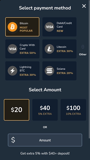 Как уже упоминалось, игроки могут выбирать свои любимые криптовалюты и использовать их для пополнения счета и вывода средств . Не стоит забывать и о том, что для более традиционных игроков казино в этом заведении также принимаются платежные карты.
