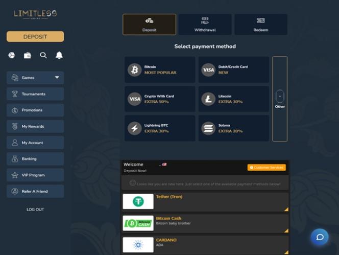 Limitless Casino — это небольшой игровой бренд, ориентированный на американскую аудиторию, но предлагаемые на этом сайте способы оплаты криптовалютой весьма разнообразны и впечатляют.
