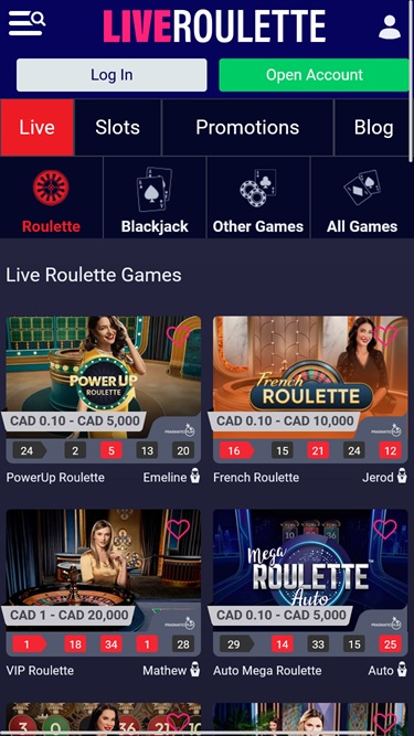 LiveRoulette также является домом для 153 Другие игры перечислены ниже:
