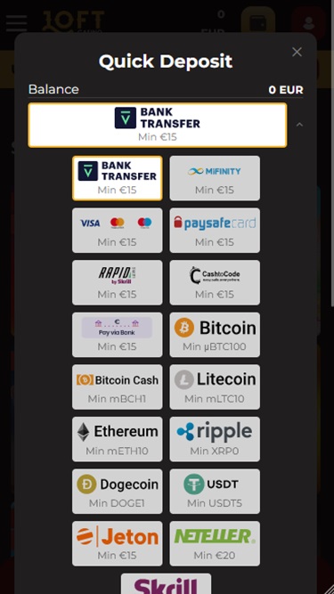 Казино Loft доступно на немецком, английском, французском и русском языках. Мобильная версия платформы также очень стабильна и надежна, поэтому пользователи iOS и Android могут играть в игры с таким же уровнем качества и проработки.