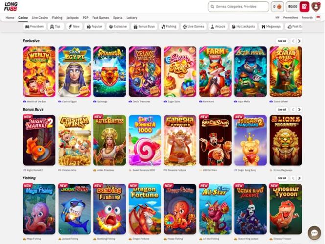 Казино Longfu88 предлагает впечатляющий выбор игр от более чем 100 разработчиков программного обеспечения , включая Microgaming, Net Entertainment, Playtech, BetSoft, 1x2gaming, Big Time Gaming, Evolution Gaming, Ezugi, Habanero Systems, Novomatic, Play'n GO, playson, Quickspin, Relax Gaming, Vivo Gaming, Endorphina, Wazdan, GameArt, Booming Games, Pragmatic Play, Nolimit City, Red Tiger Gaming, LuckyStreak, Spinomenal, Felix Gaming, Red Rake Gaming, Skillzzgaming, Kalamba, Mobilots, Platipus Gaming, Skywind, Triple Edge Studios, BGAMING, Northern Lights Gaming, Stormcraft Studios, SA Gaming, OneTouch, All41 Studios, CQ9 Gaming, Gameburger Studios, Slot Factory, Neon Valley Studios, Swintt, Woohoo Games, Mancala Gaming, Expanse Studios, SmartSoft Gaming, KA Gaming, Blue Guru Games, Holle Games, Buck Stakes Entertainment, Caleta Gaming, Games Global, Reevo, Amusnet Interactive, Ash Gaming, Greentube, Tom Horn Gaming, Gamomat, Iron Dog Studio, Foxium, Just For The Win, PearFiction Studios, Slingshot Studios, Fortune Factory Studios, RubyPlay, AvatarUX, Crazy Tooth Studio, ReelPlay, Alchemy Gaming, Rarestone Gaming, Indi Slots, Black Pudding Games, Snowborn Games, Hacksaw Gaming, Gold Coin Studios, Gamzix, Slotmill, Aurum Signature Studios, Onlyplay, ELA Games, Winfinity, 3 Oaks Gaming, AE Sexy, Spribe, Jili, Circular Arrow, HammerTime Games, Nailed It! Games, Reel Kingdom, Imagine Live, Popiplay, ICONIC21, Clawbuster, Galaxsys, VoltEnt, InOut Games, PlayAce, Turbo Games, Penguin King and Red Papaya .