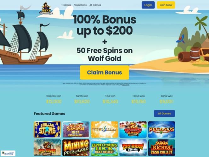 Компания Lucky Admiral Ontario проделала отличную работу, произведя на нас прекрасное первое впечатление. Как только мы вошли на сайт, нас встретила теплая и красочная атмосфера. Дизайнеры выбрали пиратскую тематику, которая удивительно хорошо сочетается с яркой цветовой палитрой и художественным стилем, изображающим красочные океаны и экзотические острова.