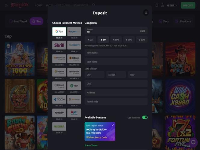 Казино Lucky Circus — это современный игорный сайт с обширной библиотекой игр, насчитывающей более 10 000 уникальных предложений, включая онлайн-слоты, игры с живыми дилерами, настольные игры и игры на выбывание. Бренд стремится привлечь широкую аудиторию, предлагая выгодную программу акций, бонусов и турниров, а также широкий выбор способов оплаты, включая криптовалюты, такие как Bitcoin.