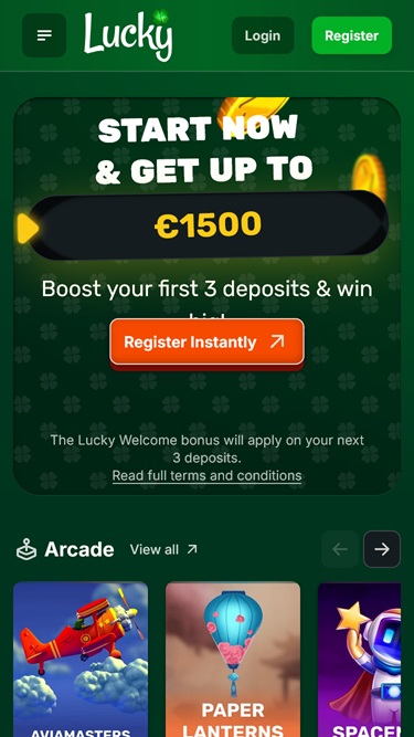 Наконец, вы можете погрузиться в сотни мгновенных игр-сражений, доступных на Lucky.co. Эти игры становятся все более популярными благодаря своей простоте и понятным правилам, среди популярных игр можно выделить Aviamasters, Aviator, Plinball Machine, Paper Lanterns, Spaceman, SpaceXY, Kite Festival Crash Games и SKyrocket.