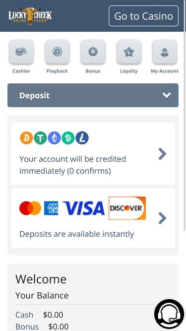 Казино Lucky Creek не предлагает своим игрокам никаких программ поощрения.