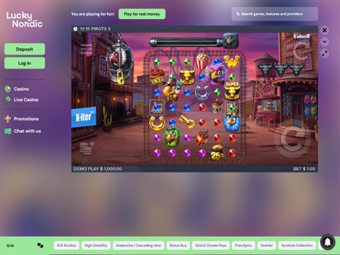 Вам нужно всего лишь вращать барабаны. Lucky Nordic предлагает коллекцию игровых автоматов, насчитывающую почти четыре тысячи наименований , предоставляя игрокам возможность выбрать предпочитаемую конфигурацию барабанов и насладиться привлекательными системами вознаграждений, включая скаттеры, множители, вайлды и многое другое.