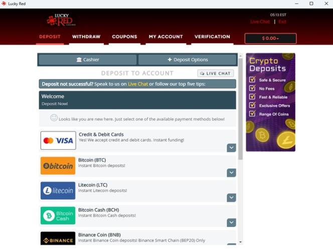 Варианты банковских операций в Lucky Red Casino