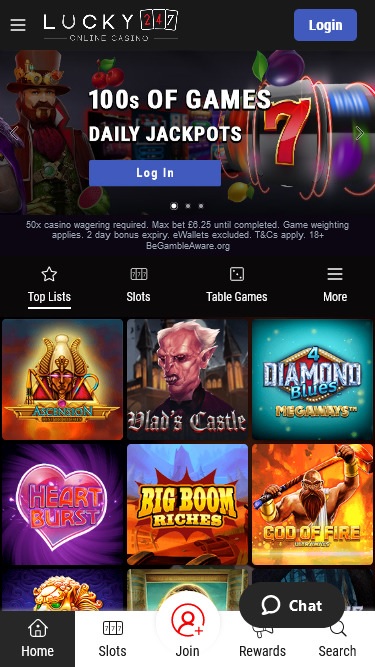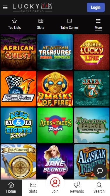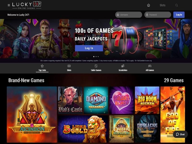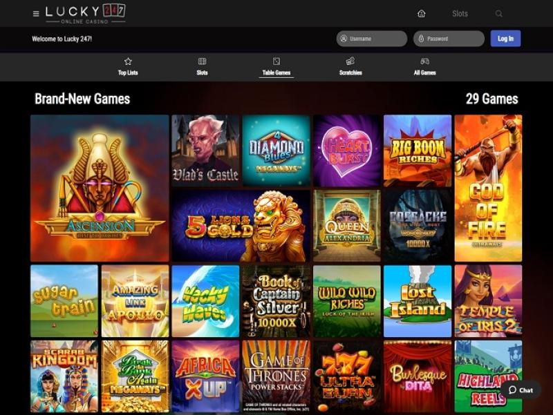Слоты составляют значительную часть игровой библиотеки Lucky247, и игроки могут насладиться сотнями видео- и классических слотов от Microgaming. Также доступен небольшой ассортимент игр с прогрессивным джекпотом, в которых можно выиграть миллионы долларов.