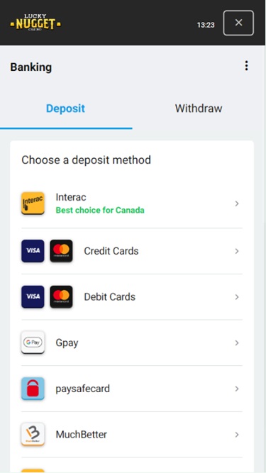 Казино Lucky Nugget работает на программном обеспечении Microgaming, Net Entertainment, Evolution Gaming, Ezugi, Rabcat, Pragmatic Play, Red Tiger Gaming, Triple Edge Studios, Northern Lights Gaming, Stormcraft Studios, Switch Studios, Electric Elephant Games, All41 Studios, Gameburger Studios, Pulse 8 Studios, Neon Valley Studios, SpinPlay Games, Real Dealer Studios, GONG Gaming, On Air Entertainment, Buck Stakes Entertainment, Games Global, Old Skool Studios, Foxium, Just For The Win, PearFiction Studios, Wild Streak Gaming, Slingshot Studios, Fortune Factory Studios, Crazy Tooth Studio, Alchemy Gaming, Snowborn Games, Gold Coin Studios, Half Pixel Studios, Eurostar Studios, Aurum Signature Studios, Area Vegas, Wishbone Games, Circular Arrow, HammerTime Games, INO Games, Nailed It! Games, Neko Games and Oros Gaming , что обеспечивает ему впечатляющую библиотеку из нескольких сотен игр. Казино доступно как в загружаемом формате, так и в виде веб-платформы для мгновенной игры, позволяющей играть непосредственно через веб-браузер. Также существует мобильная версия сайта для игроков, желающих играть на смартфонах и планшетах.