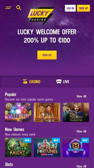 ПонравилосьЭто казино, Lucky Casino, похоже на многие другие шведские казино. Небольшой бонус, который вы можете получить, если хотите. У них сейчас самые популярные игры, и это довольно много. Live Casino есть и впечатляет для тех, кто хочет такого рода функцию. Можно было бы больше методов депозита и вывода для удобства.