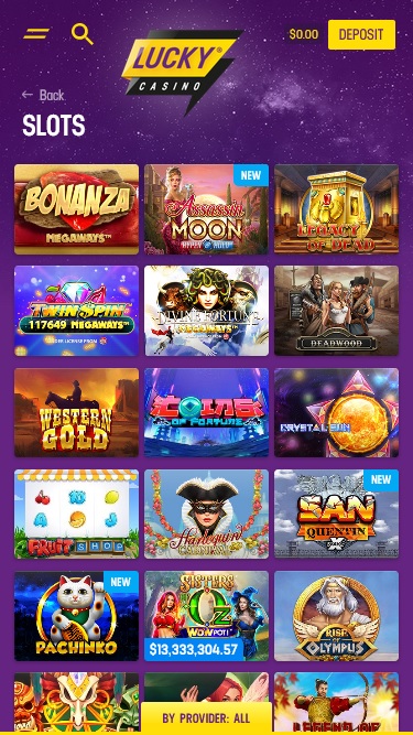 LuckyCasino работает на программном обеспечении Microgaming, Net Entertainment, Barcrest, Big Time Gaming, ELK Studios, Evolution Gaming, Oryx, Play'n GO, Quickspin, Rabcat, Relax Gaming, Thunderkick, Yggdrasil, Booming Games, Stakelogic, Pragmatic Play, Nolimit City, Felt Gaming, Red Tiger Gaming, Spinomenal, Fantasma Games, Triple Edge Studios, Northern Lights Gaming, Stormcraft Studios, Switch Studios, Bulletproof Games, All41 Studios, Gluck Games, Gameburger Studios, Neon Valley Studios, Swintt, Shuffle Master, SpinPlay Games, GONG Gaming, On Air Entertainment, Buck Stakes Entertainment, Games Global, 2by2 Gaming, Bally Technologies, GamesOS, Leander Games, Inspired Gaming, SG Interactive, Gamomat, Red7Mobile, Scientific Games, Bally Wulff, Just For The Win, PearFiction Studios, Slingshot Studios, Fortune Factory Studios, Jade Rabbit Gaming, 4ThePlayer, AvatarUX, Gamevy, Crazy Tooth Studio, Japan Technicals Games, Alchemy Gaming, Snowborn Games, Hacksaw Gaming, Max Win Gaming, Bang Bang Games, Slotmill, Peter And Sons, Eurostar Studios, Aurum Signature Studios, Area Vegas, RAW iGaming, Print Studios, Gaming Corps, HammerTime Games, INO Games and Nailed It! Games , а игры предоставляются через веб-платформу. Также доступна мобильная платформа, позволяющая играть на смартфонах и планшетах.