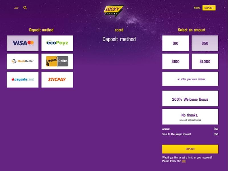 Это казино, Lucky Casino, похоже на многие другие шведские казино. Небольшой бонус, который вы можете получить, если хотите. У них сейчас самые популярные игры, и это довольно много. Live Casino есть и впечатляет для тех, кто хочет такого рода функцию. Можно было бы больше методов депозита и вывода для удобства. Попробуйте, может быть, выиграете, может быть, проиграете.