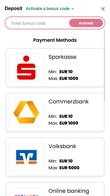 💰 Минимальный депозит€10/ €20 (cryptocurrencies)