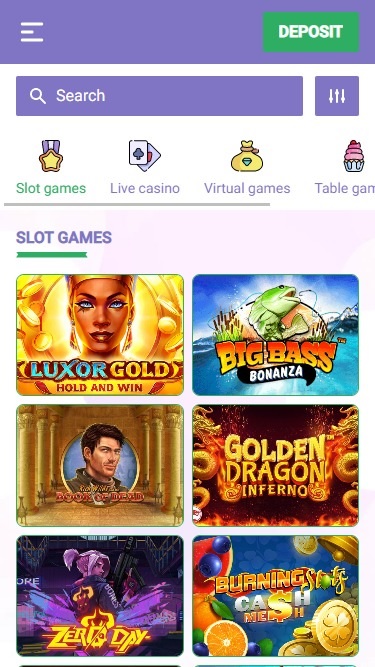 Здесь игроки могут опробовать первоклассные слоты, такие как: Reactoonz, Royal Coins 2: Hold and Win, Big Bass Splash, Wanted Dead or a Wild, 9 Coins Hold the Jackpot, The Dog Hou$e Megaways, Legacy of Dead, Zeus the Thunderer, Zero Day, Wolf Fang, Wild Hot 40, 9 Burning Dragons, Golden Buffalo, Mystic, Fortune Deluxe, Mystic Fortune Deluxe, Book of The Divine, Rich Wilde and the Book of Dead, Book of Gold Multichance, Luxor Gold: Hold and Win, Luxor Gold: Hold and Win, Golden Dragon Inferno, Sugar Rush, Hot Slot: 777 Crown, Seven Seven, Honey Money, Hot Hot Fruit, Wild Justice, 20 Boost Hot, Moon Princess 100, Gates of Olympus, Big Bass Bonanza, Lucky Cat, Chaos Crew, Burning Slots Ca$h Me$h, Rise Of Olympus 100, Stunning Hot Remastered, Poseidon's Rising, Bigger Bass Bonanza, Leprechaun's Coins, Age Of Pirates, Sweet Bonanza, Chicken Madness, The Dog Hou$e, Charms and Treasures, Rich Wilde and the Tome of Madness, Arctic Fruits, American Spirit, Aztec Mystery, Blood, 4th and Goal, Alice In DreamLand, Cave Of Fortune, A Beautiful Mind, Big Wild Buffalo, Safari Sam 2, Alien Fruits, All Lucky Clovers, King Cobra, 15 Dragon Pearls: Hold and Win, 3 Coins, Astro Wild, 5 Dragons Legend, Alice, Fruit King, God of Chess, Vmpire Kiss, 20 Clovers Hot и многое другое.