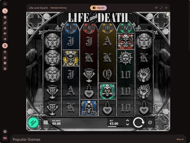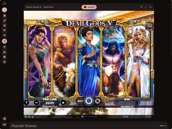 Чтобы получить доступ к этому разделу страницы, просто нажмите на вкладку «Казино» в меню, и вам будут представлены все доступные игры, которые в данный момент находятся в ротации. Портфолио разделено на категории, такие как «Популярные», «Новые», «Настольные игры», «Живые казино» и т. д., а добавление вкладки поиска и фильтров по провайдерам еще больше помогает найти именно те игры, в которые вы хотите поиграть.