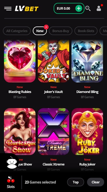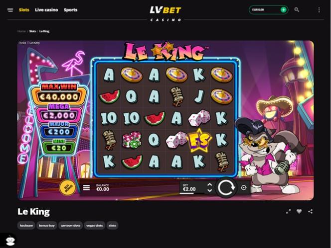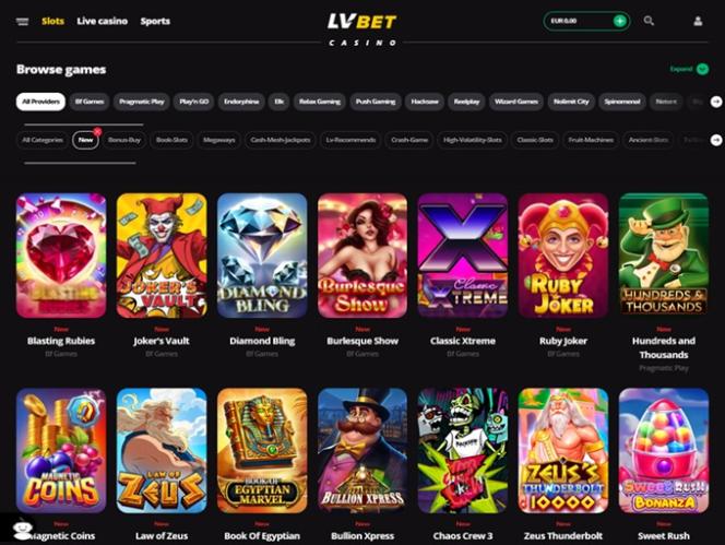 В LV Bet представлен широкий выбор слотов — почти тысяча игр от различных известных разработчиков, таких как Microgaming, Play'n GO и Thunderkick. На выбор предлагается множество различных функций и тем, а также прогрессивные джекпоты. Доступны и мобильные версии слотов, позволяющие играть где угодно, где есть подключение к интернету.