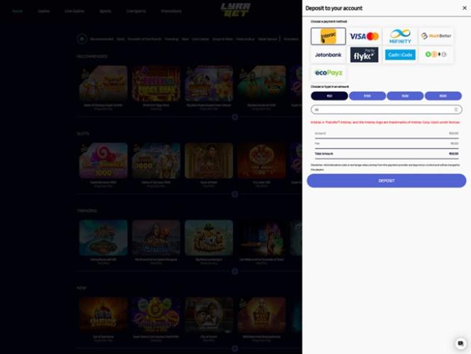 LyraBet предлагает множество способов оплаты, поэтому у игроков не возникнет проблем с внесением и выводом средств, поскольку они могут использовать надежные варианты, такие как банковские переводы, Neteller , Revolut , Skrill и другие электронные кошельки, популярные платежные карты и различные криптовалюты.