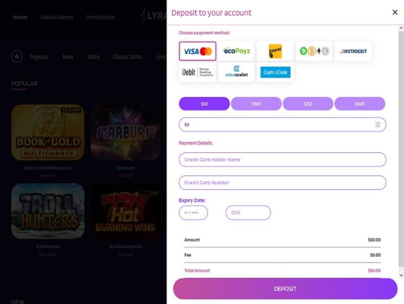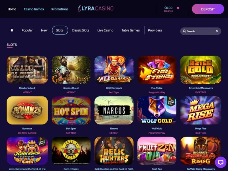 В отношении игр LyraCasino все довольно просто. Игры находятся в центре внимания, и все внимание сосредоточено на игровой библиотеке.