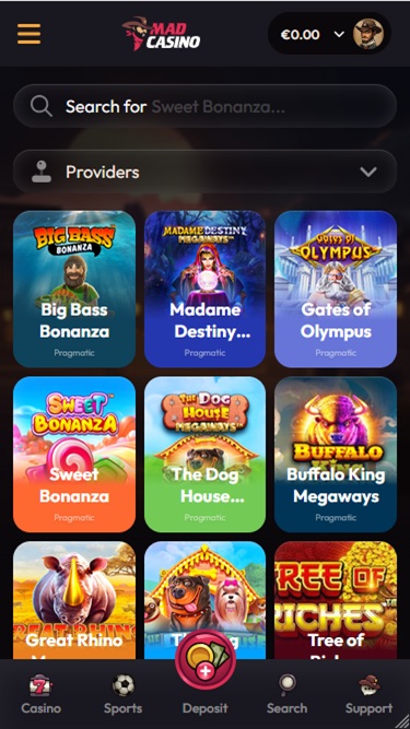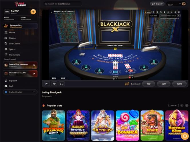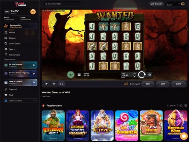Казино Mad Casino предлагает солидный выбор азартных игр. Бренд получил лицензии от более чем 15 уникальных поставщиков программного обеспечения, и хотя это, возможно, не самое большое число, которое мы видели в наших обзорах, предлагаемый каталог игр отличается большим разнообразием.