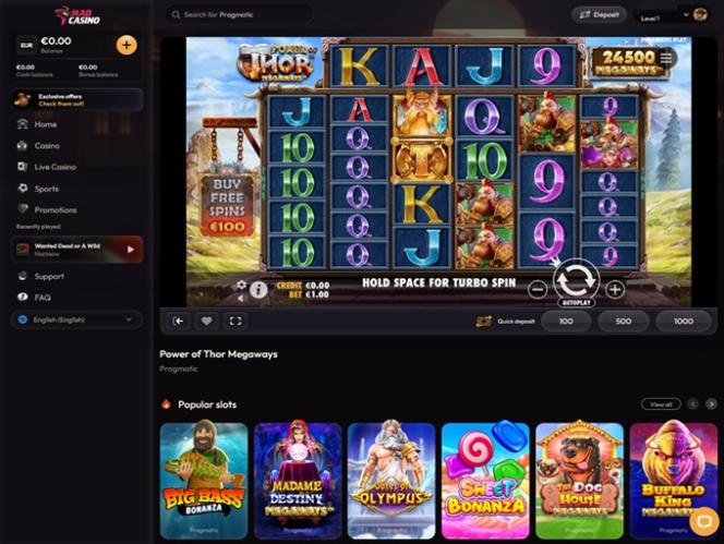 Мы рекомендуем начать с обширной линейки слотов на реальные деньги . Mad Casino удалось собрать внушительный выбор этих популярных игр, которые удовлетворят даже самых опытных игроков, независимо от их предпочтений и вкусов. Вы можете играть в слоты старой школы, новейшие релизы, Megaways, игры с кластерными выплатами, бонусные покупки и различные другие жанры и подкатегории.