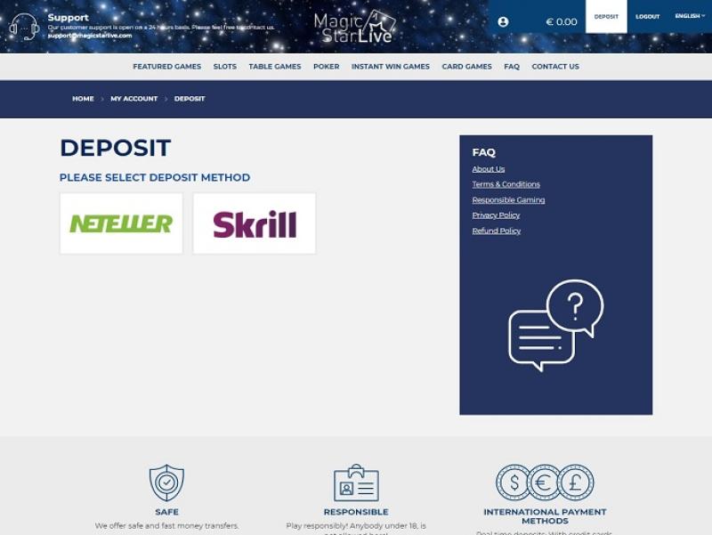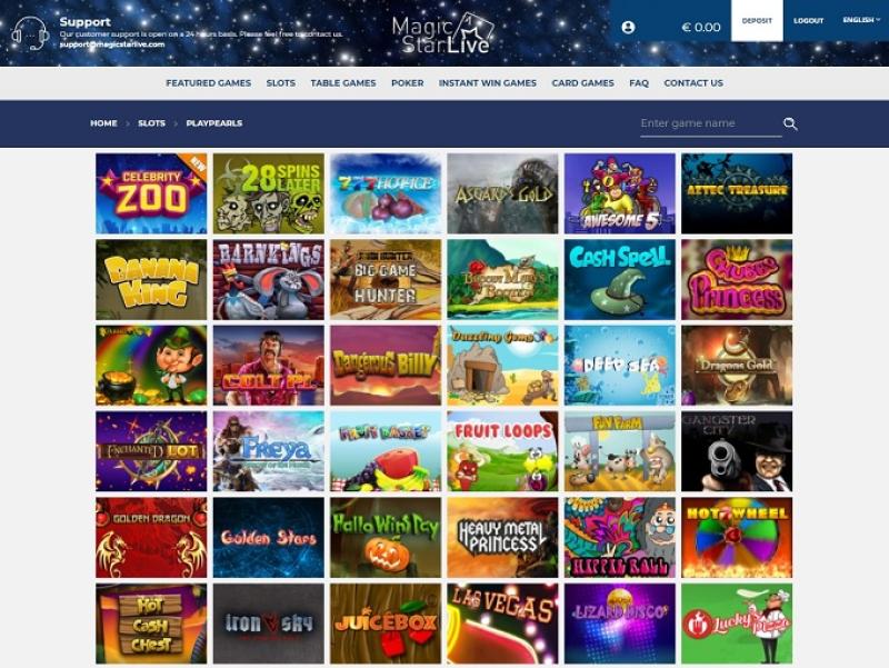 Казино Magic Star Live работает на программном обеспечении BetSoft, The Art Of Games, Endorphina, PlayPearls, Spinomenal, Fugaso, We Are Casino and Groove Gaming , а игры доступны как через веб-платформу для мгновенной игры, так и через мобильный сайт, позволяющий играть на ходу.Другие игры
